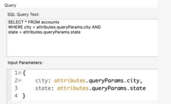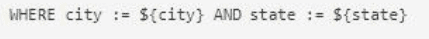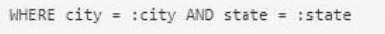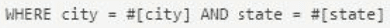 How should the WHERE clause be changed to set the city and state values from the configured input parameters?