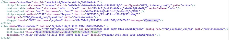 An HTTP POST request is then sent to the decideColor flow's HTTP Listener.