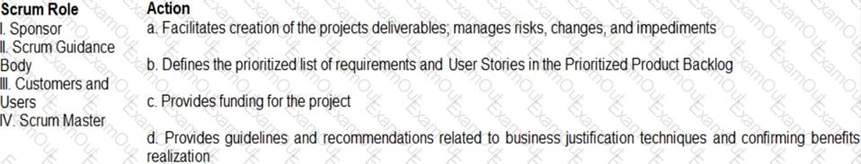 The table given below presents some Scrum roles that play an important part in business justification and their