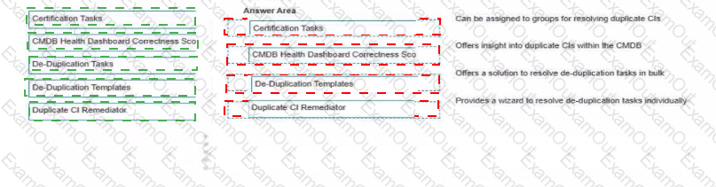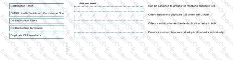 ACMDB Administrator seeks to understand the available tools for preventing addressing, and remediating duplicate CIs Drag and drop each feature with the corresponding outcome Some options may not apply.