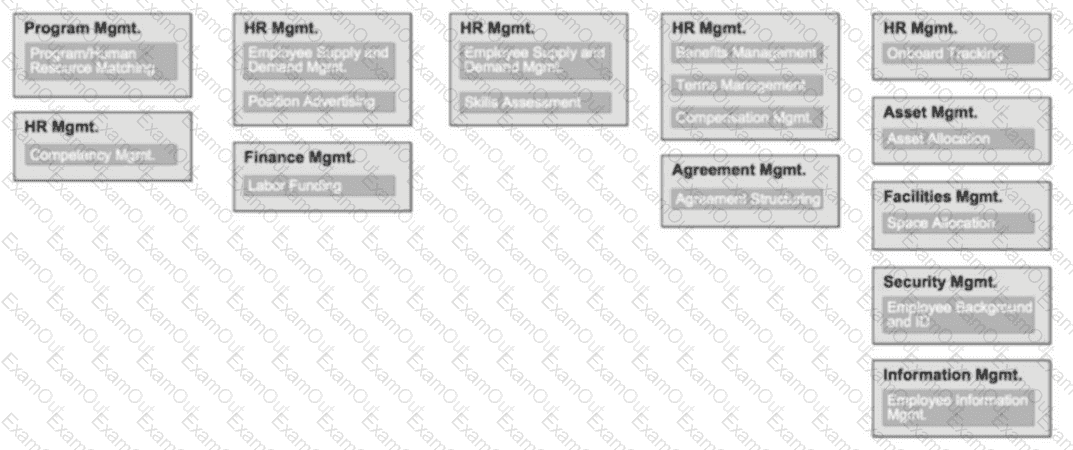 Consider the following business capability map. where cells of a model are given different colors to represent maturity levels (note the letters G, R. Y. P also denote the colors used = Green, Red. Yellow and Purple):