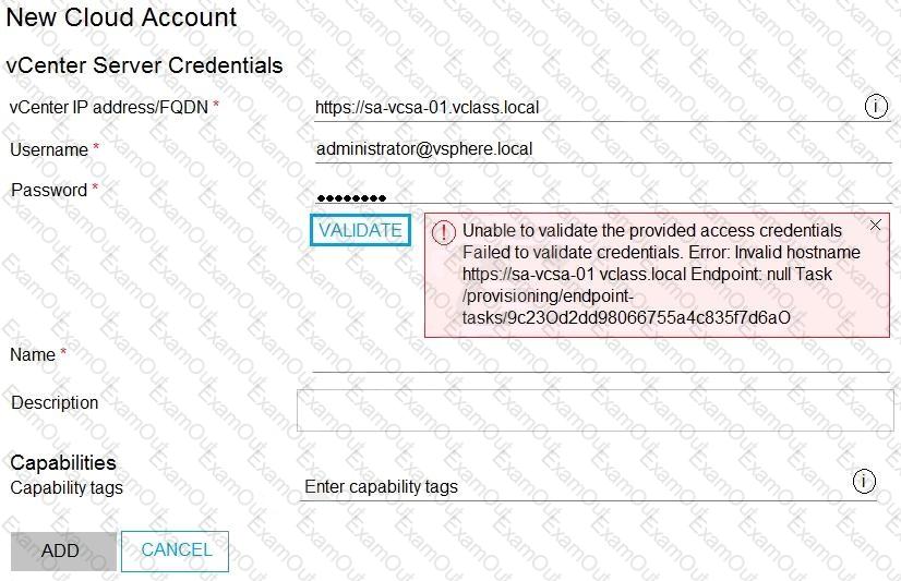 An administrator receives the error in the attached screenshot when attempting to add a cloud account.
