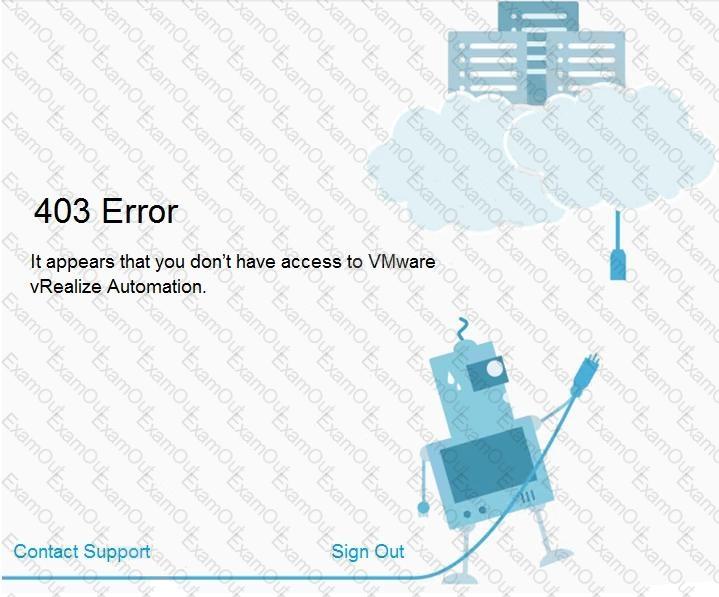 The administrator is assigned a ticket to address the issue that when the App-Dev members log into vRA, they receive the error shown in the exhibit. Based on initial investigation, all of the users experiencing the issue are members of the same Active Directory Group: App-Dev-Users. Upon review from within vRA Identity & Access Management, all of the users reporting the issue appear under the Active Users tab.